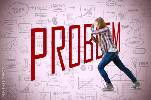 problem, word, background, challenge, pink, text, collage, vignetting, chart, graph, difficulty, presentation, stress, angry, trouble, concept, depression, unhappy, negative, frustration, despair, mental, anxiety, disorder, business, breakdown, hopeless, helpless, counseling, symptom, insomnia, pessimistic, conceptual, brainstorm, seminar, woman, creative, female, businesswoman, young, adult, casual attire, caucasian, european, solution, pretty, pushing, sleepy, push