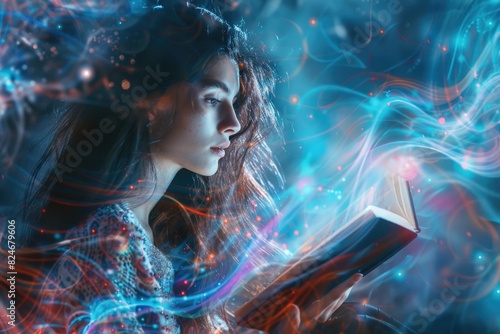 Woman reading a book in the dark, suitable for educational or mysterious themes