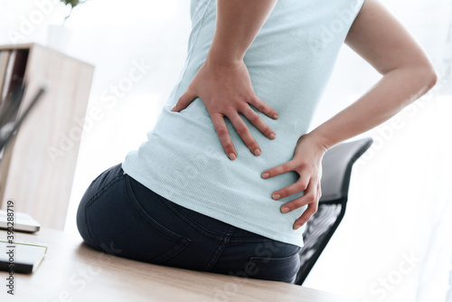 ache, backache, bed, bedchamber, body, chiropractor, cramp, discomfort, domestic, effort, emotional, female, frustration, grimacing, hair, home, disease, inflammation, kidney, lower, lumbar, massaging, medic, medicals, pain, painful, physical, rheumatism, rubbing, sitting, spine, suffering, symptom, sleepy, touching, uncomfortable, unwell, waist, woman, sit, office, put, 2, hand, back