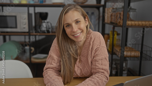 woman, smiling, office, laptop, desk, indoor, workplace, kitchen utensile, shelf, cosy, interior, home, happy, professional, casual attire, business, work, young, female, modern, computer, desktop, table, workspace, startup, creative, entrepreneur, technology, friendly, relaxed, environment, job, digital, people, lifestyle, communication, employer, employment, staff, consultation, meeting, businesswoman, innovation, networking, strategy, success, meeting room, manager, adviser