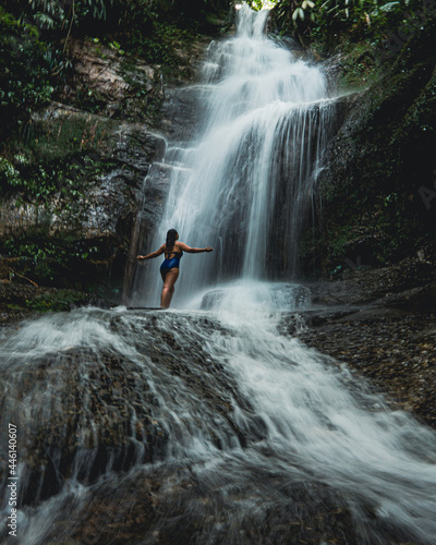 woman standing in a waterfall