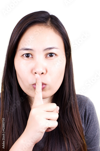 adult, girl, woman, lady, finger, action, isolated, people, concept, stop, white background, face