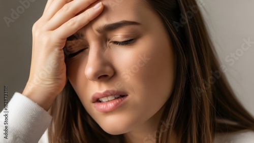 woman, head, ache, pain, stress, migraine, exhaustion, health, care, medicals, problem, human, face, unwell, unhappy, young, adult, female, girl, disorder, disease, ill, disease, anxiety, sleepy, upset, brunette, hand, temple, close, indoor, horizontal, beauty, struggle, depressed, caucasian, worry, tension, suffer, depression, fatigue, discomfort, frustration, grieved, fear, worried, sick, experiencing, trouble
