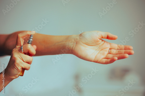 woman, testing, perfume, tester, spray, arm, wrist, try, scent, scented, fragrance, perfumery, store, skin, chemist's shop, boutique, sniff, girl, lady, person, sexy, sensual, odour, bottle, luxury, aromatherapy, pampering, fresh, aroma, romantic, girlfriend, client, client, retail, holding, beauty, sensuality, applying, cologne, marvellously, fruity, floral, cosmetic, essence, unrecognizable, copy space, advertising, good, quality