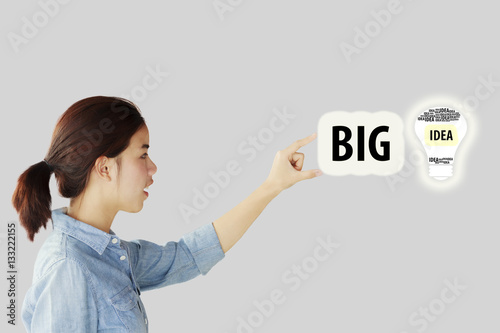 Woman touching light bulb icon with concept of idea