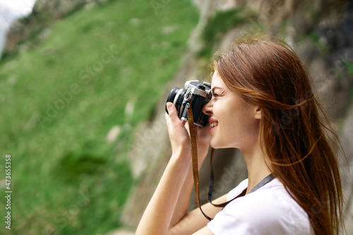 Woman tourist mountains travel landscape nature vacation