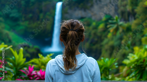 tropical, waterfall, woman, beauty, nature, person, park, outdoors, hair, smile, summer, forest, people, green, smiling, model, 1, face, boy, teenage, tree, teenage, fashion, happiness, children, eye