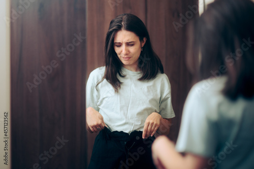 woman, trying on, tight, pant, large, small, fitting room, change, room, shopping, shopper, fashion, weight loss, unhappy, sad, bad, problem, client, trousers, client, mall, clothes, clothing, boutique, store, getting ready, upset, outfit, clothes rack, apparel, issue, trouble, buttons, looking, body, belly, waist, seize, girl, female, young, person, wrong
