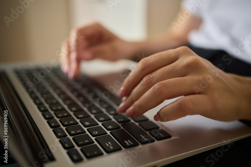 Woman Typing on Laptop for Work, Close-up Shot Remote Work, Freelancing, Home Office