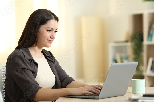 Woman using laptop at home