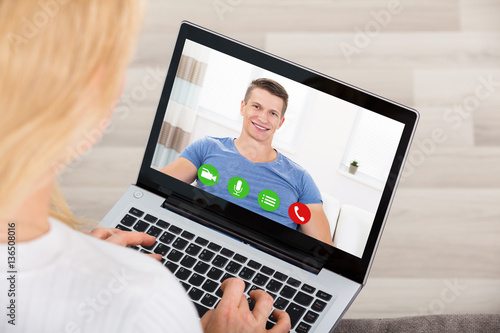 Woman Videoconferencing On Laptop
