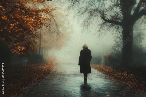 woman, walking, alone, fog, autumn, park, path, mystery, loneliness, solitude, nature, fall, leaf, tree, mist, atmosphere, mood, scenic, landscape, outdoors, season, weather, cold, dark, tranquil, peaceful, quiet, serene, contemplative, meditative, journey, travel, walk, exploring, discovering, wanderlust, adventure, get-away, escape, relaxation, stress, relief