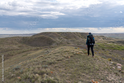 solitude, explore, adventure, walking, butte, hiking, saskatchewan, woman, horizontal, freedom, outdoors, day, active, landmark, tour tourism, escape, backpack, vitality, renewal, tourist destination, copy space, full-length, backview, healthy lifestyle, one person, rural, health, cloud, attraction, destination, travel, landscape, good health, color image, tourist attraction, travel destination, national landmark