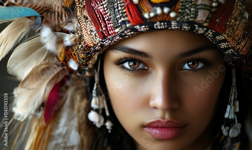 Woman wearing a traditional headdress, cultural diversity