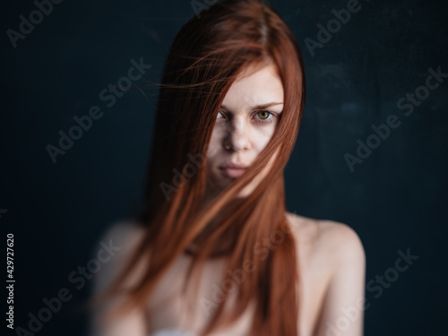 woman with bare shoulders on a dark background clean skin cosmetology model