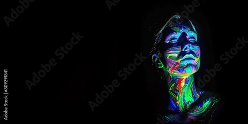 woman, face, neon, paint, colourful, glowing, bright, vibrant, high-coloured