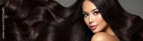 woman, hair, beauty, portrait, styling, elegance, shine, confidence, smooth, healthy, fashion, model, glamour, closeup, coiffure, long hair, luxurious, skin, make-up, asian, natural, artistic, studio, light, graceful, attractive, texture, wave, charme, colours, glowing, expression, joy, beauty care, professional, vitality, radiant, feminine, sleek, hair care