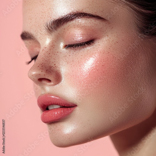 Woman with frothy skin and frothy makeup in a bright and artistic setting