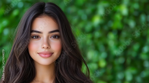 woman, brown hair, green background, portrait, studio, posing, female, person, beauty, head shot, long hair, fashion, colours, model, smile, expression, style, lifestyle, personality, confidence, artistic, photo, closeup, attractive, hair, eye, appearance, casual attire, vibrant, nature, background, light, emotion, youthful, charming, modern, female model, creative, conceptual, trendy, natural, fresh, elegance