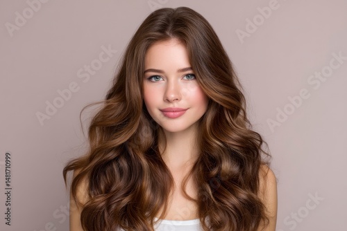 woman, posing, looking, smiling, portrait, head shot, long hair, wavy hair, brown hair, coiffure, hair care, beauty, facial, skincare, make-up, youth, feminine, elegance, style, fashion, model, studio shot, indoor, human face, human eye, facial expression, fair skin, cosmetic, health, wellness, face, young adult, person