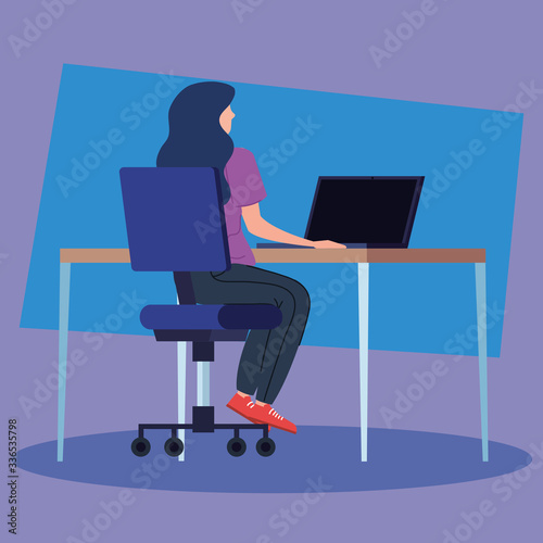 woman working in telecommuting with desk and laptop vector illustration design
