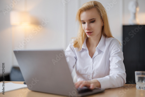 Woman working on her laptop in the office.