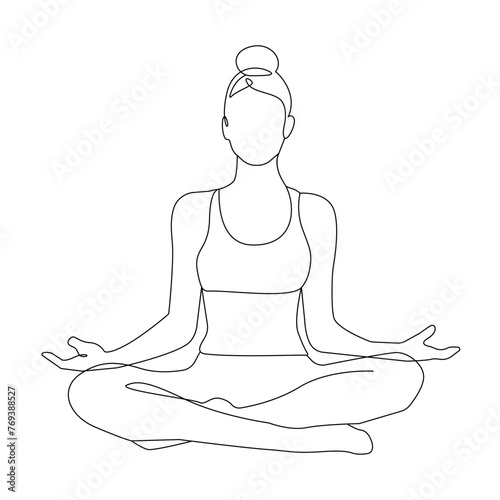 Woman Yoga Lotus Pose One Line Drawing. Female Sport Concept Minimalist Drawing. Yoga Meditation Line Art Modern Minimal Drawing Trendy Illustration Continuous Line Art. Vector EPS 10