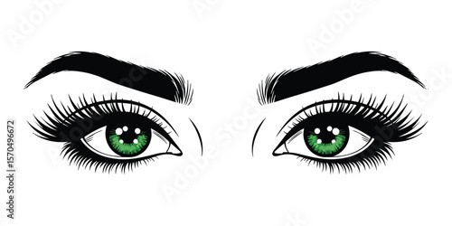 Woman's Beautiful Green Eyes and Eyebrows Illustration