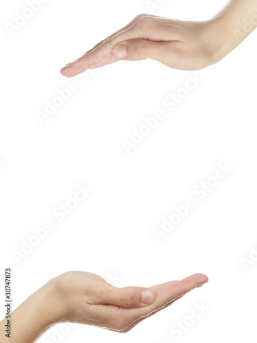 Womans hands protecting something