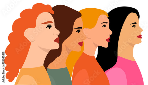 fashion, feminism, face, asian, solidarity, poster, silhouette, american, lady, character, blond, beauty, various, banner, black, race, together, equality, freedom, young