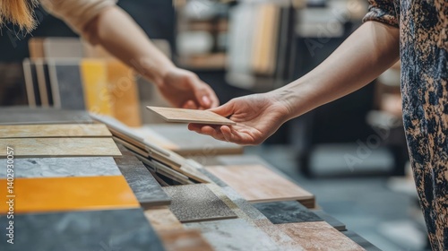 tile, ceramic, flooring, home, renovation, improvement, design, interior, woman, hand, choosing, selection, sample, material, texture, colours, style, pattern, surface, construction, building, project, room, house, apartment, decor, upgrade, modern, contemporary, classic, rustic, elegant, luxury, kitchen, bathroom, wall, floor, option, variety, display, showcase, shop, store, retail
