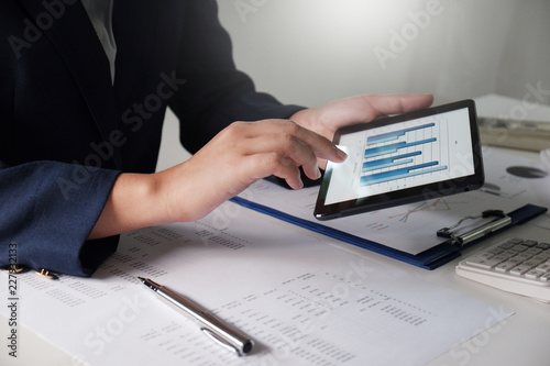 Women working in office. financial analysis with charts on pad for business, accounting, insurance or finance concept.