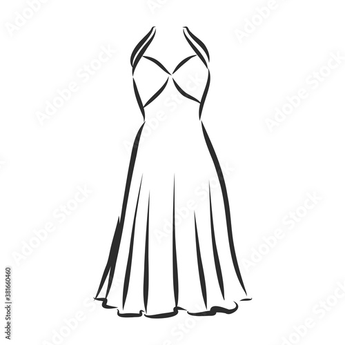 women's dresses. Hand drawn vector illustration. Black outline drawing isolated on white background women's dress, vector sketch illustration