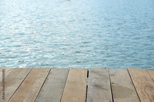 wood board pattern with water in background
