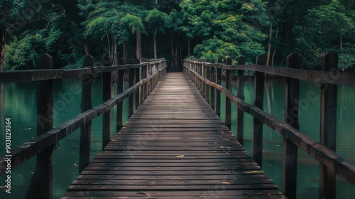 Wood Bridge. A Dark-Toned Wooden Bridge in a Serene Natural Landscape