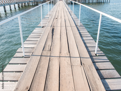 Wood bridge with eye line on blue sea