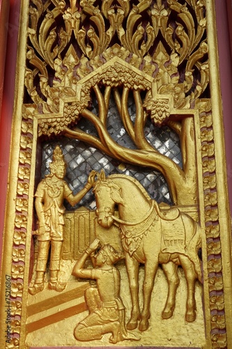 wood carving Thai Buddha story art