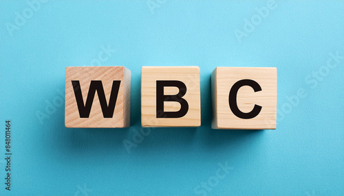 Wood cubes with abbreviation text WBC. White Blood Cells; World Boxing Council. Top view.