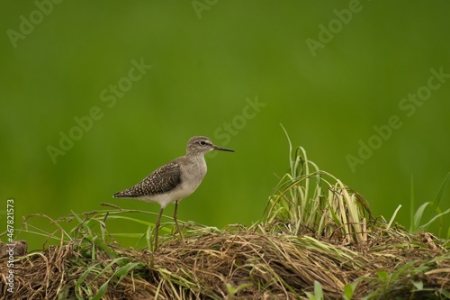 Wood Sandpiper bird in paddy field of Chamarajanagar, Karnataka
