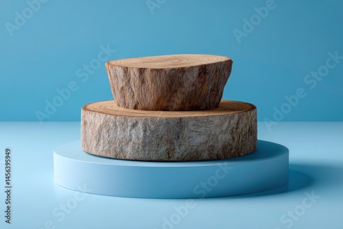 Wood Slice on Blue Display Stand