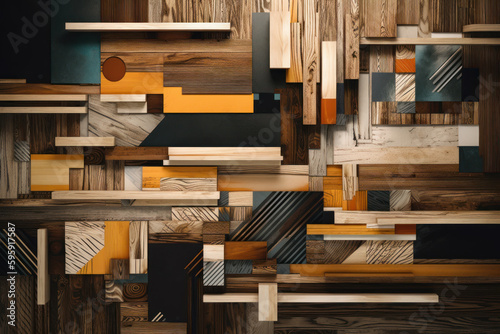 Wooden abstract background, pieces of wood Generative AI