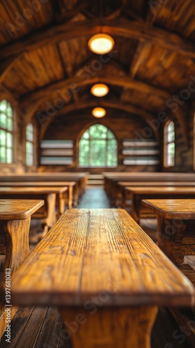 church, wood, bench, interior, light, window, building, room, wooden, architecture, design, seat, furniture, inside, vintage, school, desk, table, old, class, antique, perspective, empty, rustic, hall, view, nobody, space, background, surface, grain, material, brown, texture, plank, panel, timber, wall, style, construction, board, desk, indoor, structure, hallway, passage