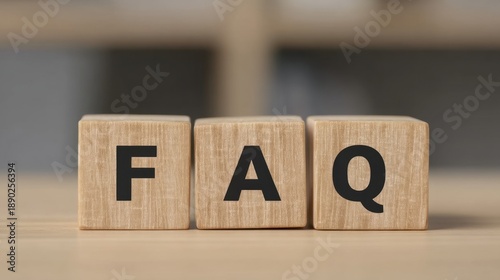 Wooden Blocks Displaying the Word FAQ on a Light Surface for Informative Content Presentation