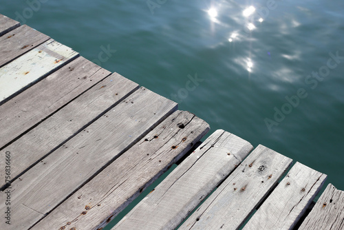 Wooden boardwalk with blue sea
