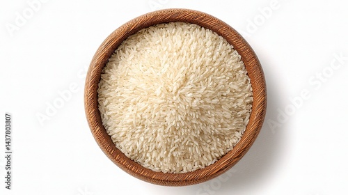 Wooden Bowl Filled with Uncooked Basmati Rice from Top View