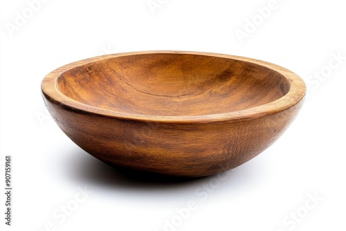 Wooden Bowl, plate, isolated on white background, full depth of field , ai