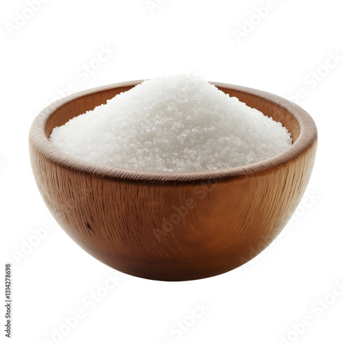 wooden bowl with white sugar isolated on transparent background Generative Ai.