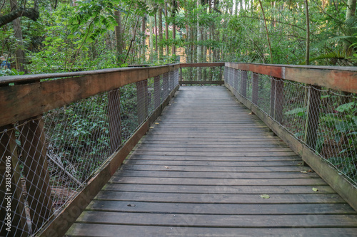 Wooden bridge path way inside rain forest