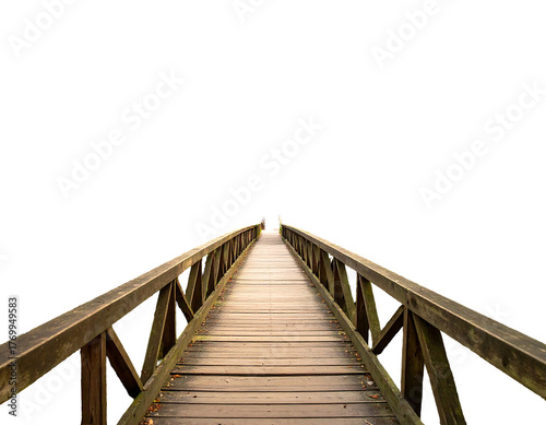 bridge, wooden, path, perspective, vanishing, point, paseo, board, railing, nature, outdoors, travel, direction, evacuated, dark, onward, forward, receding, leading, journey, plank, structure, crossing, passage, empty, isolation, stillness