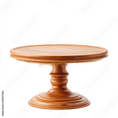 racked, cake, wood, round, brown, pedestal, table, empty, display, dessert, kitchen, vintage, serving, rustic, elegant, plate, food, bakery, sweet, presentation, studio, closeup, surface, single, object, furniture, design, classic, style, white, background